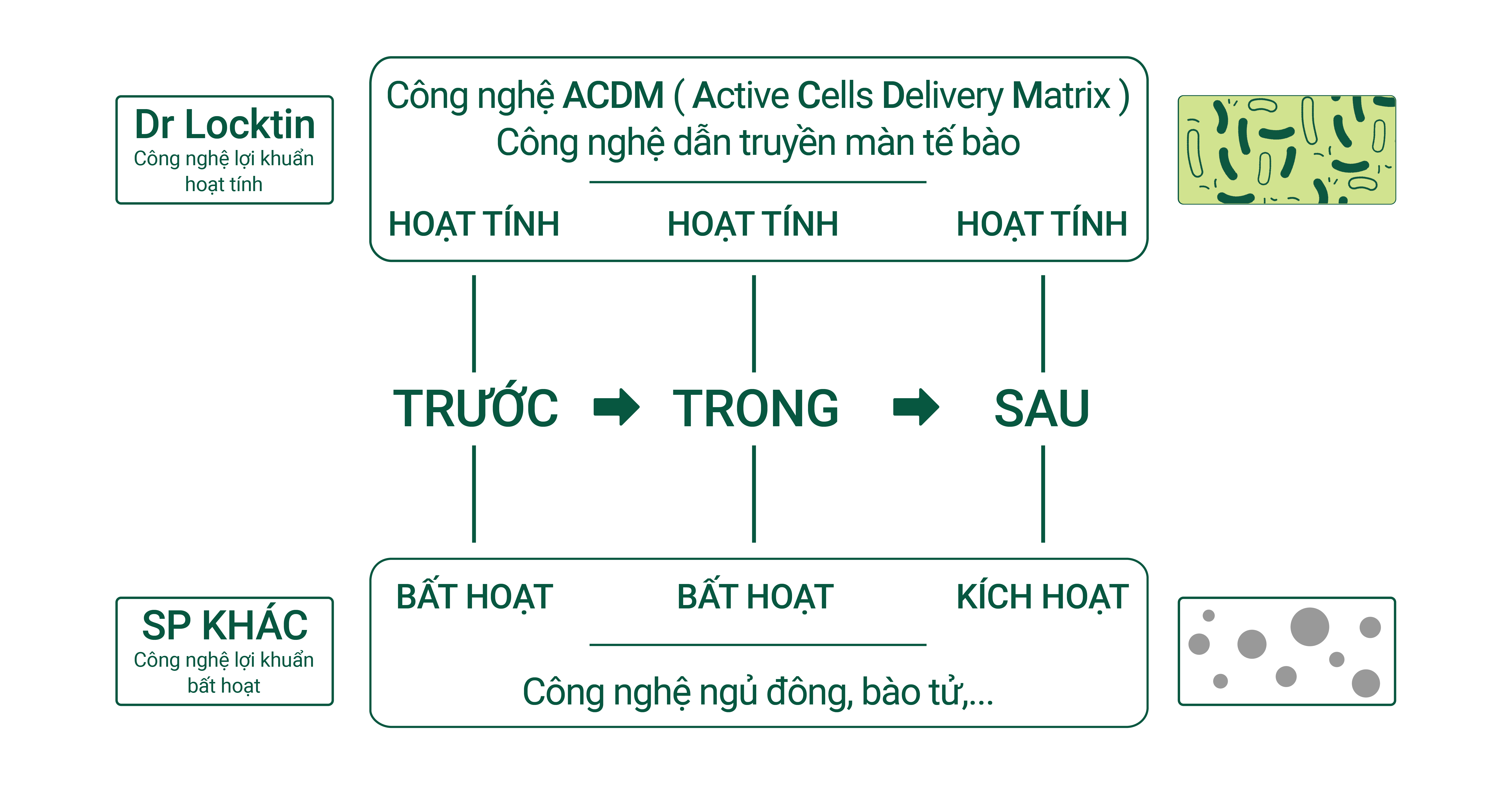 Màng protein sinh học bao bọc lợi khuẩn ở trạng thái hoạt tính đi qua môi trường axít mạnh của dạ dày để an toàn đến ruột với mức tiêu hao không đáng kể.